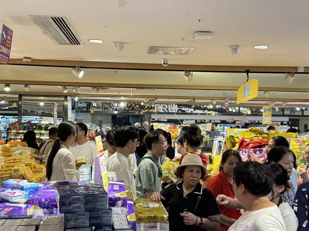 记者近日走访关注到,天河城负一层的永旺超市依然顾客盈盈,无论是生鲜区还是百货区都人头攒动。